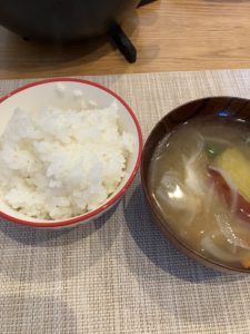 副菜は、具だくさんの豚汁と、茄子のフライ、