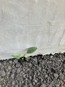 今朝、駐車場のコンクリートの壁とアスファストの隙間から、