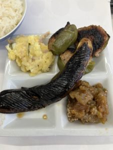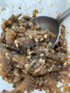半分に切って焼いてから醤油と七味をかけた焼きナス。