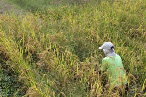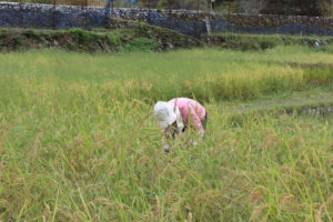 稲と同じくらいの高さまで育った草がたくさんはえていて、