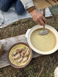 その隣はわが家持参の五平餅。