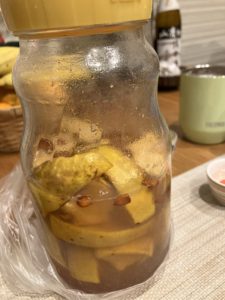 種も皮も一緒に適当な大きさに切って瓶に入れ、