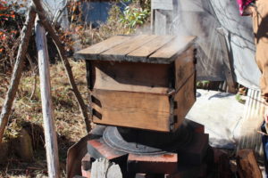 到着した時にはすでに薪のかまどでじっくり蒸されていました。