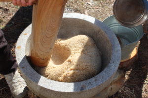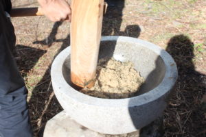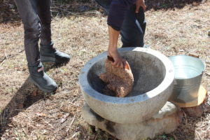 次に赤米の玄米餅をつきました。