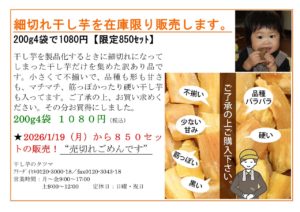 新年最初のお買い得なセット「細切れ干し芋」の販売を、