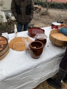 お味噌の仕込みの日に雪が降ったのは初めてでした。