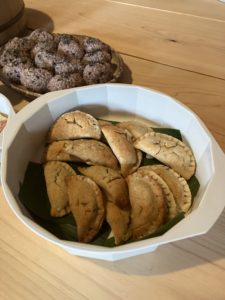 レンズ豆と新玉ねぎだけで作った餡が包まれていました。