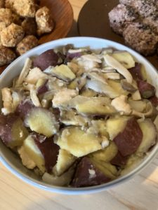 サツマイモとキノコ、鶏肉の煮物。